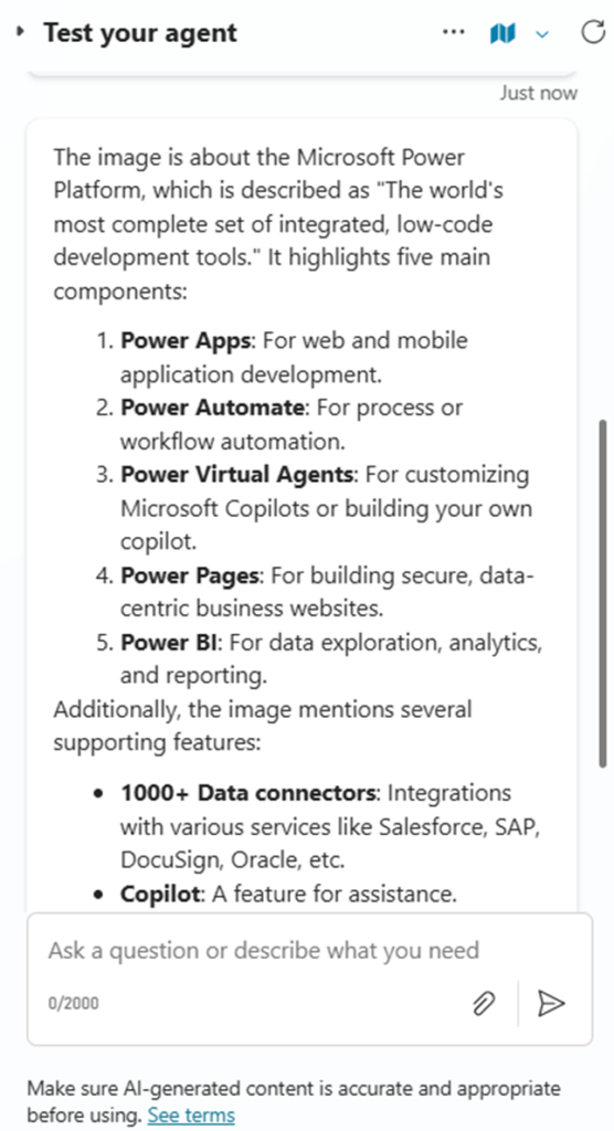 - For Testing the Copilot, I’m just going to use the below image to check if the Agent provide correct response.