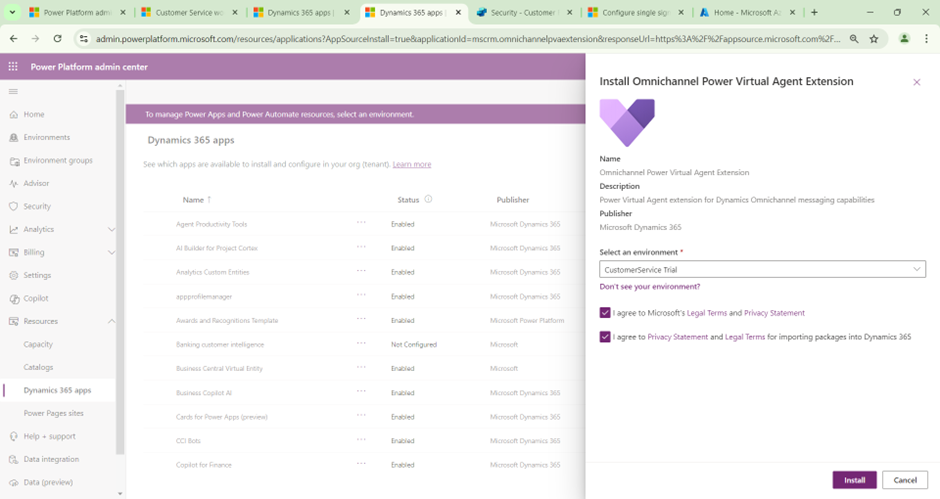 4. Install Omnichannel Power Virtual Agent Extension:
