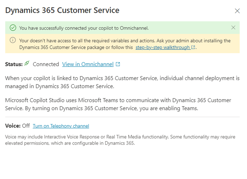 - This completes the configuration of the Omnichannel within the Customer Service admin center. We can now go ahead and use the chat widget which embeds the Copilot and handover logic within Power Pages.