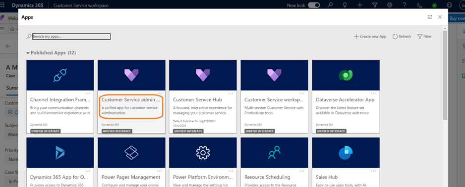 - Select the Environment where D365 Customer Service is available.