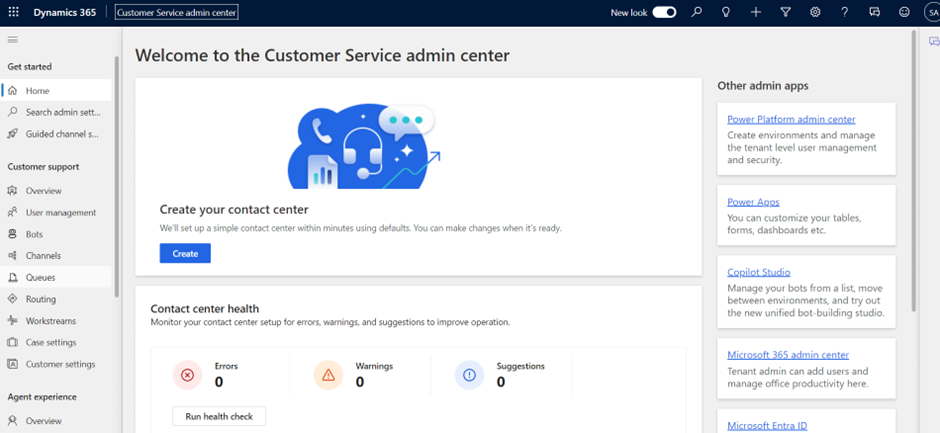- To Setup, Navigate to Customer Service admin center.