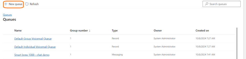 - Click on New Queue.