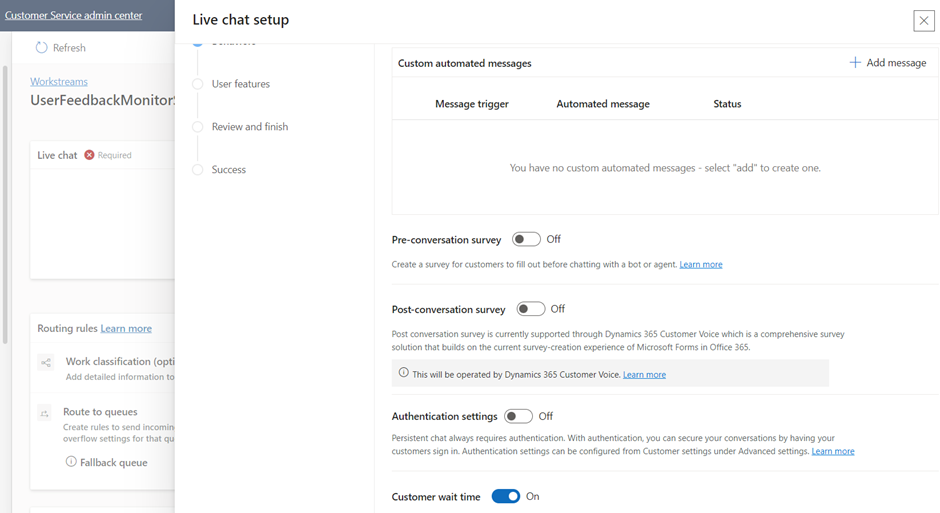 - The queue setup is now done, and we will add this to a workstream as the conversation handovers will first come to the workstream and from there it is routed to different queues.