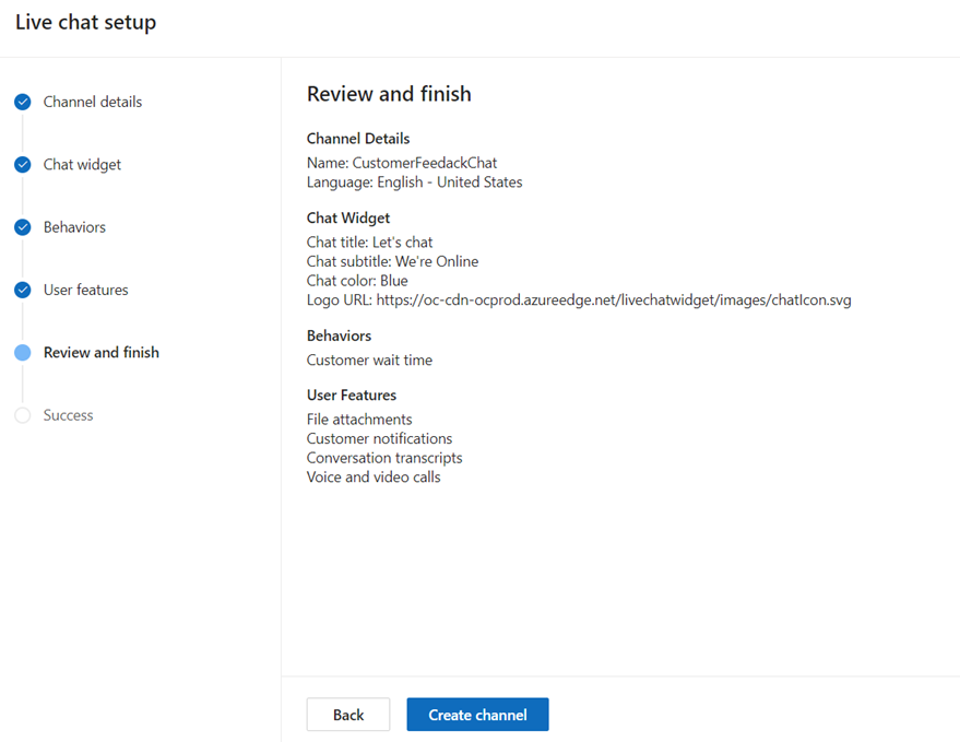 - Finally let’s click on Create channel to provision the chat channel.