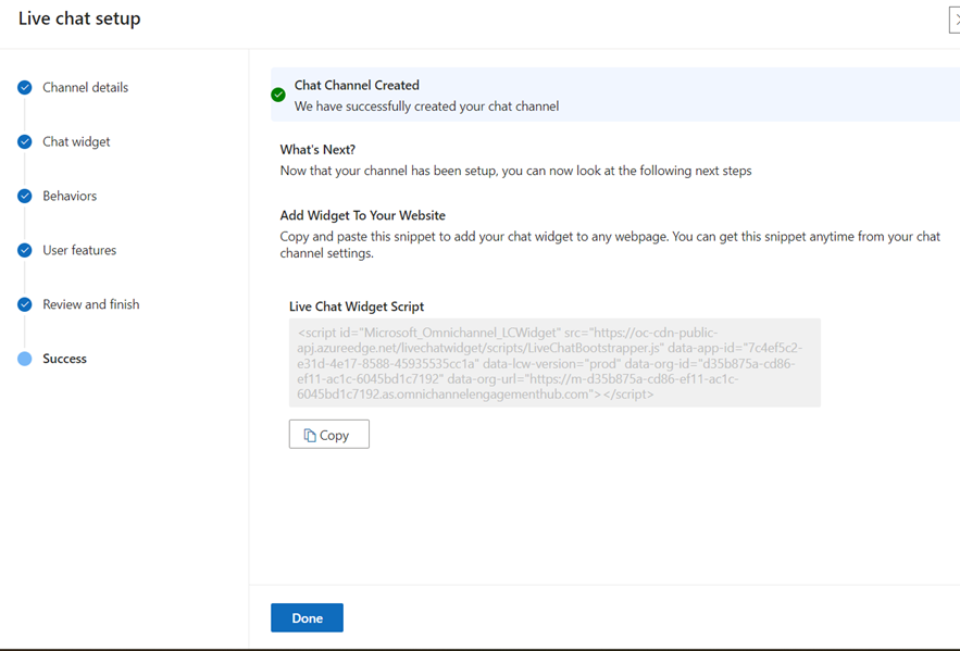 - In the Chat Widget section, click on “Copy Live Chat Widget Script’.
