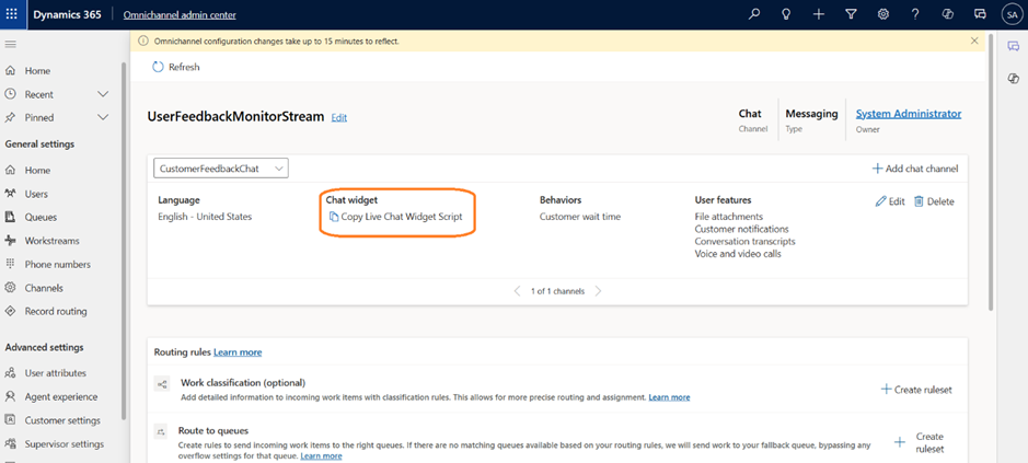 - Navigate to the Omnichannel Admin Center -> Open the Workstream that we recently created.