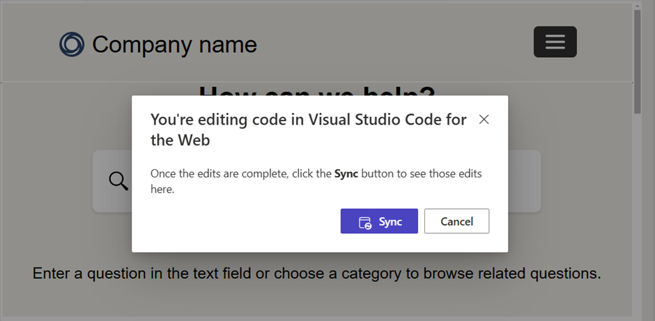 - Once done, Click on Sync button to update the changes in to the Power Pages Portal.