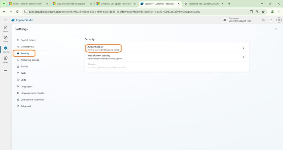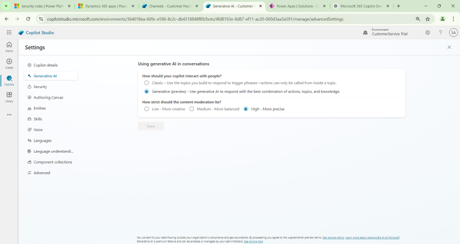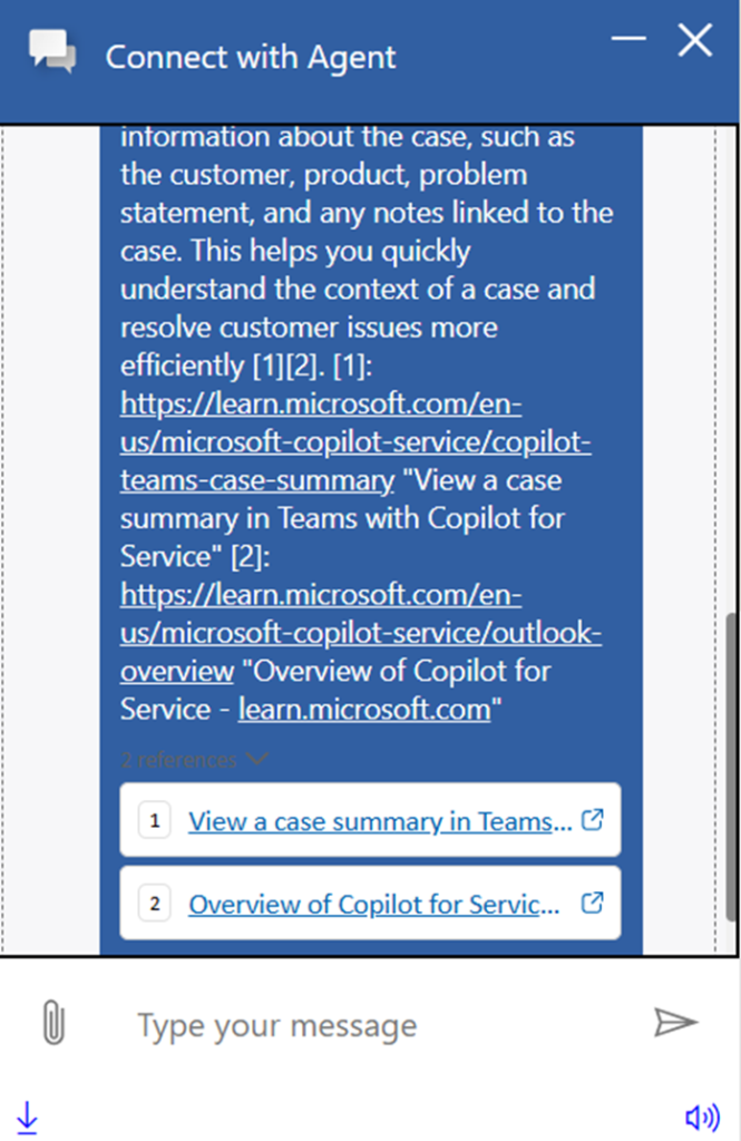 - This Copilot can answer the user queries related to Customer Service implementation using External Website as Knowledge Source.