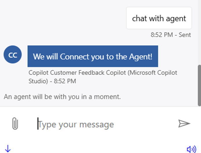 - Customers can also trigger the Chat with Live Agents anytime by prompting the Copilot to Transfer to Agent.